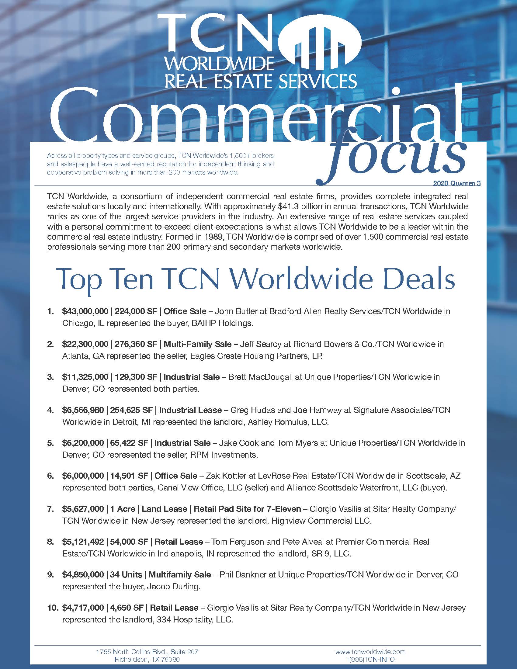 $11,325,000 | 129,300 SF | Industrial Sale – Brett MacDougall at Unique Properties/TCN Worldwide in Denver, CO represented both parties.