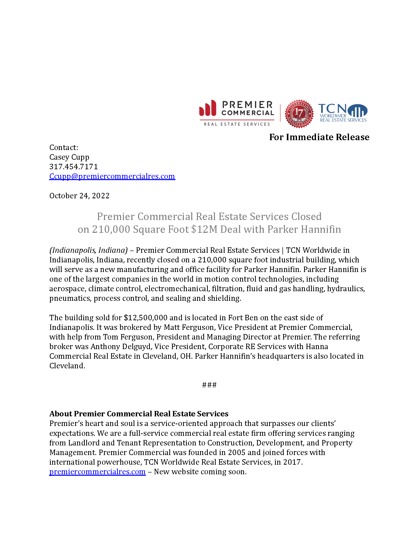 We needed space quickly & Premier Commercial delivered! Our engineering group was concerned about moving so fast, but Premier delivered on the buildout, the infrastructure, & some other small detials we required. Not only do I like these guys, but they have sent some business to us, too.
